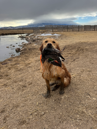 Miley! Just as crazy as the real Miley Cyrus, "She can buy herself flowers" type attitude! We were fortunate to pick up Miley at the beginning of 2024! We got her from our friends Fire Kissed Goldens in Minnesota! And she has quickly claimed her spot as one of my top hunting partners! Miley is a fireball! Drive like I have never seen in a female golden! Hard charger in the water & super birdie with amazing marking abilities! We have big plans this upcoming spring! Hoping to get her Junior Hunter this spring and then continue training for her Senior Hunter! Health Testing will be completed in the fall of 2025 where we hope she can join our breeding program!